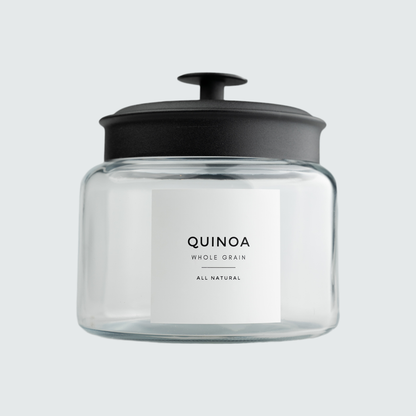 Spice It Your Way offers you beautiful glass jars featuring stylish black metal lids with a silicone seal. Whether you want to organize your baking ingredients, bulky pasta, or grains, our online metal lid collection has got you covered. These glass jars lids are air-tight and keep contents fresh for longer. These come with pre-applied labels of your choice. You even have the option to order the jars without any labels (just in case!). Made from thick borosilicate glass, these jars make your kitchen look aesthetic.